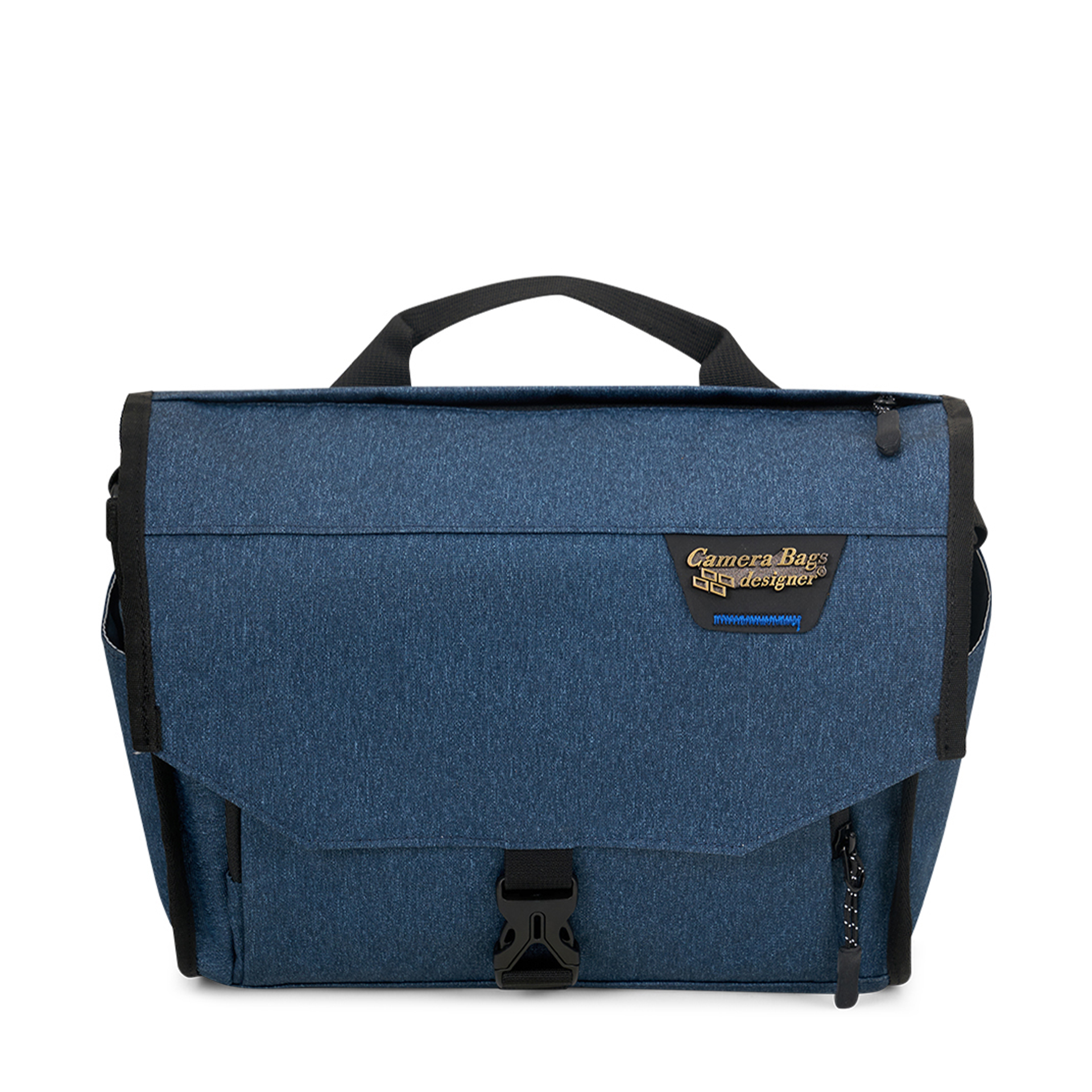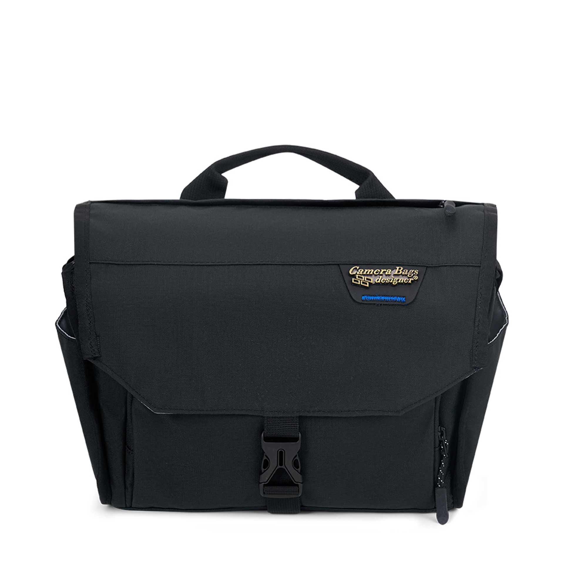 Mặt trước nắp túi được tạo điểm nhấn nổi bật với logo " Camera Bags Designer"