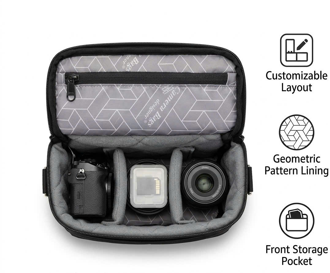 – Logo nổi bật “Camera Bags Designer” tạo điểm nhấn hiện đại, cá tính.